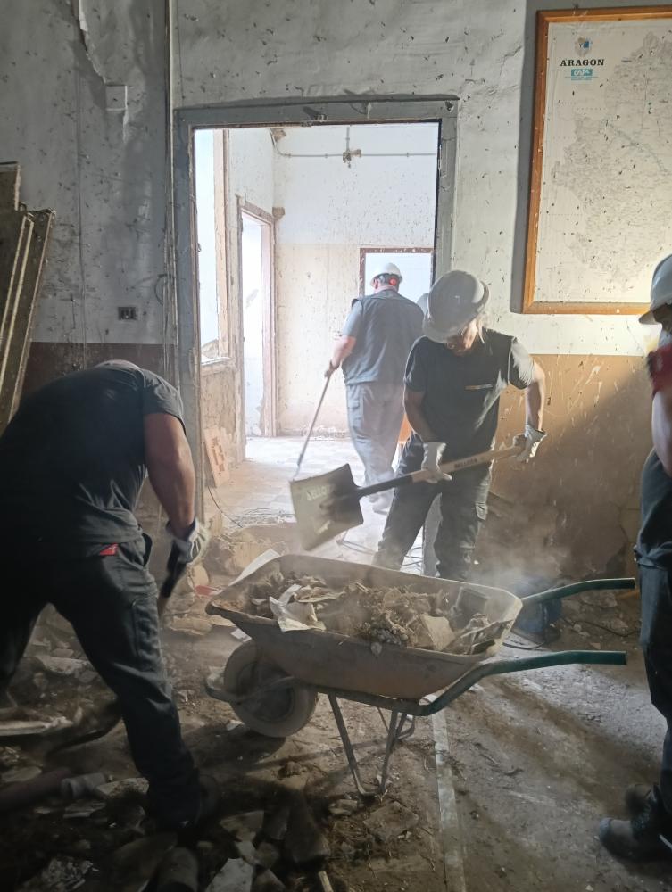 Tras completar las clases teóricas, los diez alumnos-trabajadores han comenzado a retirar el mobiliario antiguo y han inicio las demoliciones.