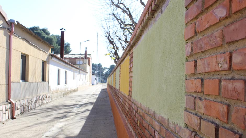 «Al principio, la idea era actuar únicamente en los ladrillos en mal estado, pero fuimos viendo que casi todos necesitan ser renovados y por ello, optamos por emprender una intervención más ambiciosa, es decir, retirar todos los ladrillos y cerrarlos con bloque, enfoscándolos, al interior con mortero normal, que luego hemos pintado, y hacia el exterior con un mortero de color. El resultado nos ha dejado muy satisfechos», subraya Grasa. También han actuado en todo el zócalo, han reparado las partes dañadas y han reforzado la parte alta del muro. Y, como colofón, han repintado las verjas metálicas y la fuente.